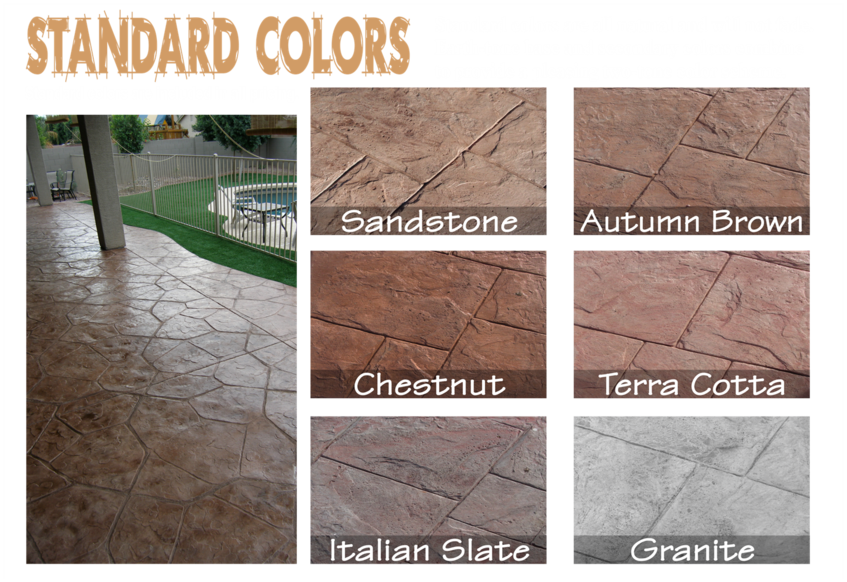 These colors are impregnated into the concrete surface during or after the. Here is a quick guide to the colors that work best for stamped. Desert Tan Slab Peacan Release Heavy Stone Texture Stamp ABOVE.